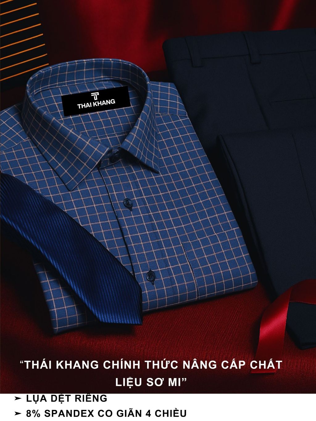 Chiếc áo sơ mi này sử dụng vải lụa cao cấp được đặt dệt riêng, kết hợp 8% spandex, cho khả năng co giãn 4 chiều linh hoạt, giúp các bố mặc cực kỳ thoải mái và dễ vận động.