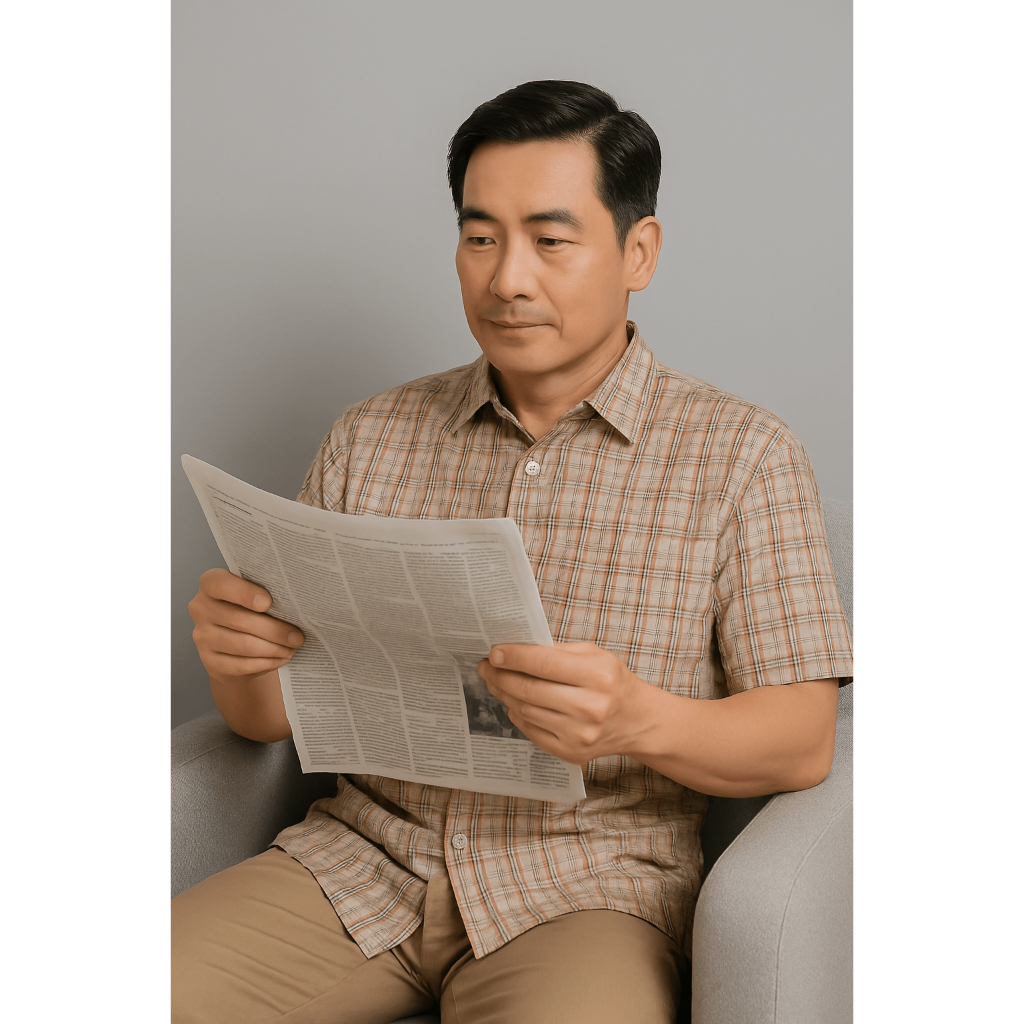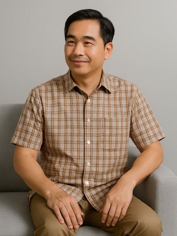 - Form áo sơ mi rộng rãi phù hợp với người trung niên và người lớn tuổi