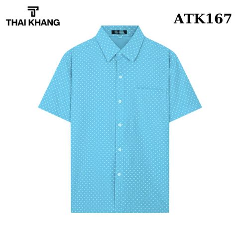 - Áo sơ mi nam ngắn tay vải lụa được Thái Khang đặt dệt và in họa tiết theo Thái Khang